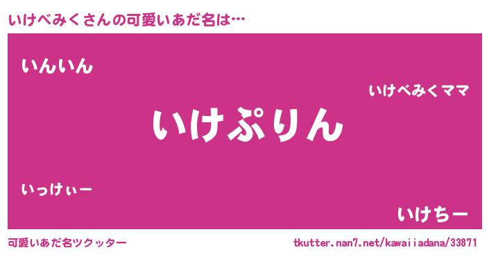 | 男性向けラノベタイトル風あだ名 | 『転生したらいけべみくだった件』 |