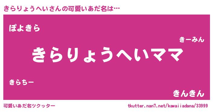 | 意味不明あだ名 | 『永久保存きらりょうへい』 |