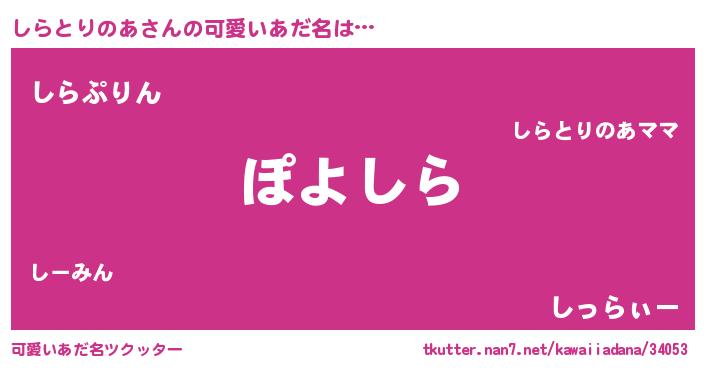 | ヘコむあだ名 | 『しらぷりん』『しらとりのあ(笑)』 |