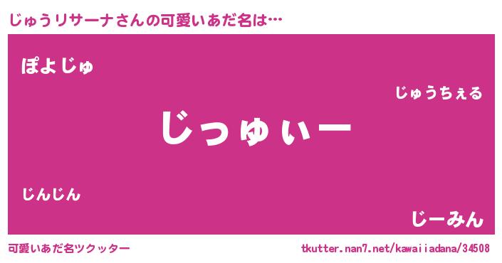 | 男性向けラノベタイトル風あだ名 | 『じゅうリサーナの嫁は女の子じゃないと思った?』 |
