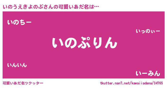 | 女子向けラノベタイトル風あだ名 | 『いのうえきよのぶの玉の輿計画!』 |