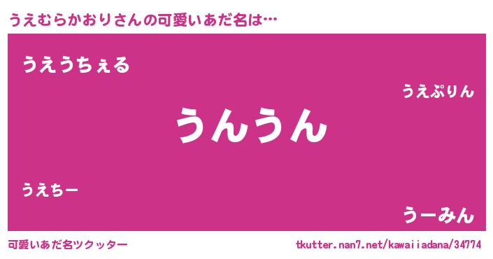 | 恥ずかしいあだ名 | 『プリティーうえむらかおり』『うえちん』 |