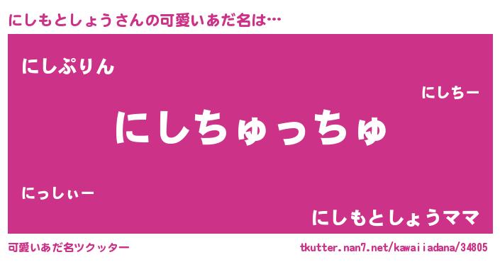 | ヘコむあだ名 | 『にしもとしょう(爆)』『豆乳』 |