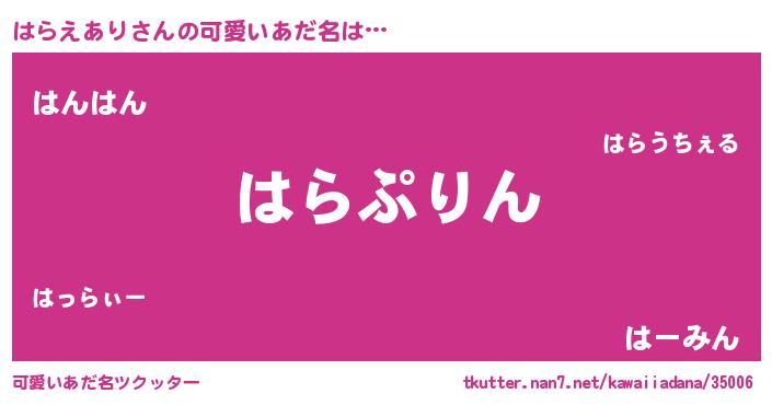 | 男性向けラノベタイトル風あだ名 | 『はらえあり~年齢イコール彼女いない歴の魔法使い~』 |