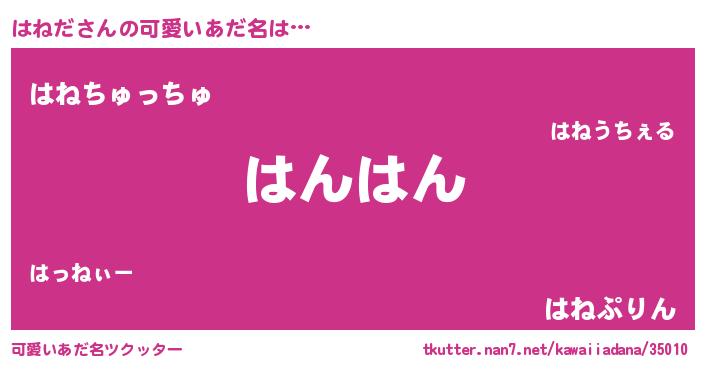 | ポケモン風あだ名 | 『ハネチュウ』『ハックウザ』 |