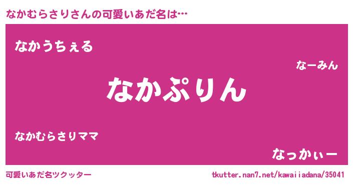 | 男性向けラノベタイトル風あだ名 | 『なかむらさり~年齢イコール彼女いない歴の魔法使い~』 |