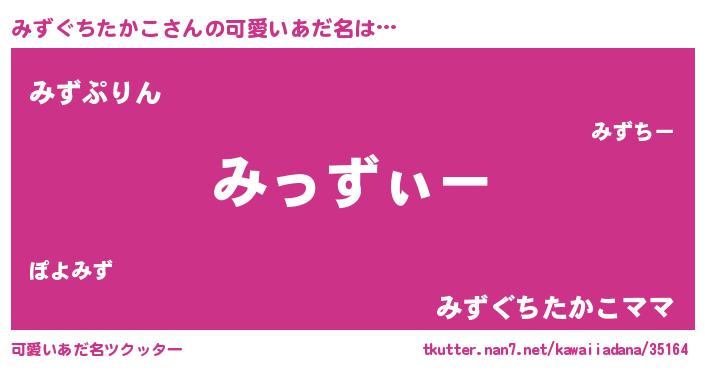 | ポケモン風あだ名 | 『ヒミズグチタカコ』『ミズキング』 |