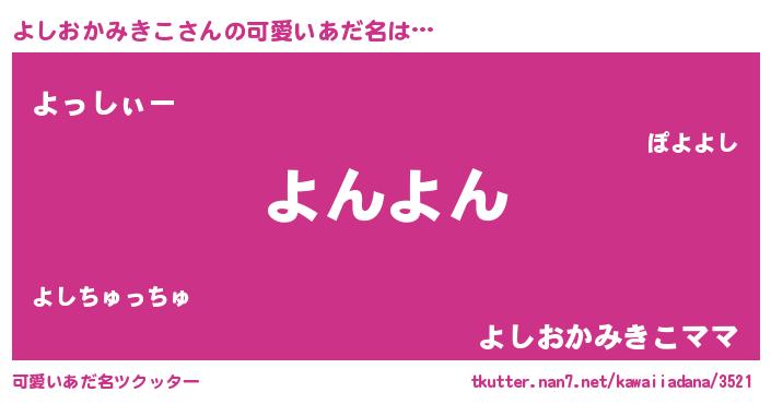 | 恥ずかしいあだ名 | 『プリティーよしおかみきこ』『よしちん』 |