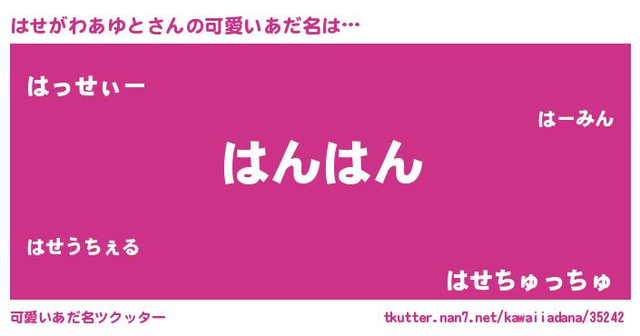 | 恥ずかしいあだ名 | 『プリティーはせがわあゆと』『はせちん』 |