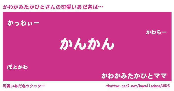 | ヒーロー風カッコイイあだ名 | 『スーパーカワカミタカヒト』 |