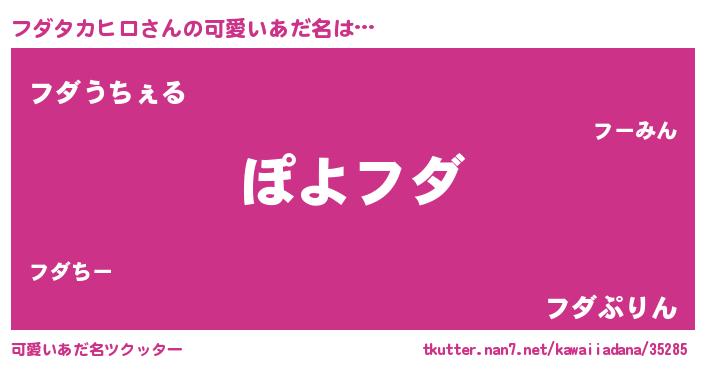 女子向けラノベタイトル風あだ名 | 『乙女ゲームの破滅フラグしかない悪役フダタカヒロに転生してしまった…』 |