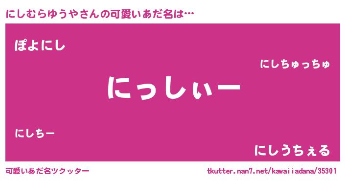 | 男性向けラノベタイトル風あだ名 | 『にしむらゆうやの嫁は女の子じゃないと思った?』 |