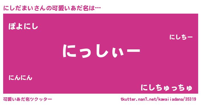 | ポケモン風あだ名 | 『ニシゴンZ』『ヒニシダマイ』 |