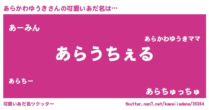 | 恥ずかしいあだ名 | 『アラカワユウキデラックス』『あらちん』 |
