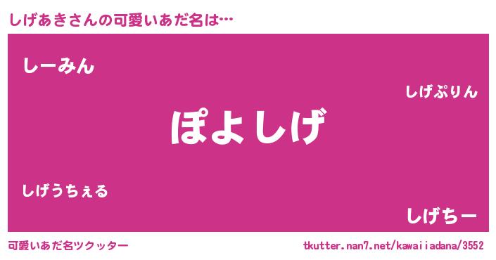| 男性向けラノベタイトル風あだ名 | 『この素晴らしい世界にしげあきを!』 |