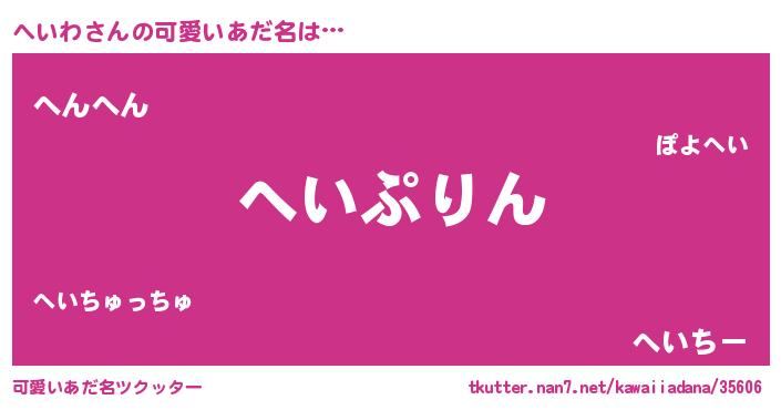 | 恥ずかしいあだ名 | 『プリティーへいわ』『へいっちょ』 |