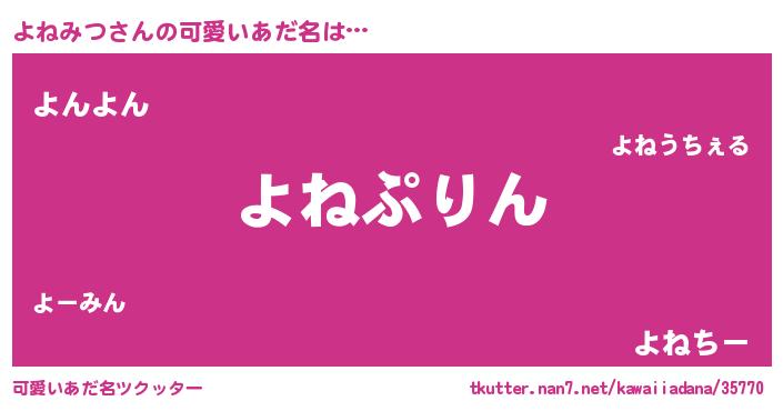 | 女子向けラノベタイトル風あだ名 | 『よねみつの玉の輿計画!』 |