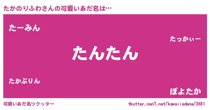 | 恥ずかしいあだ名 | 『プリティーたかのりふわ』『たかっちょ』 |