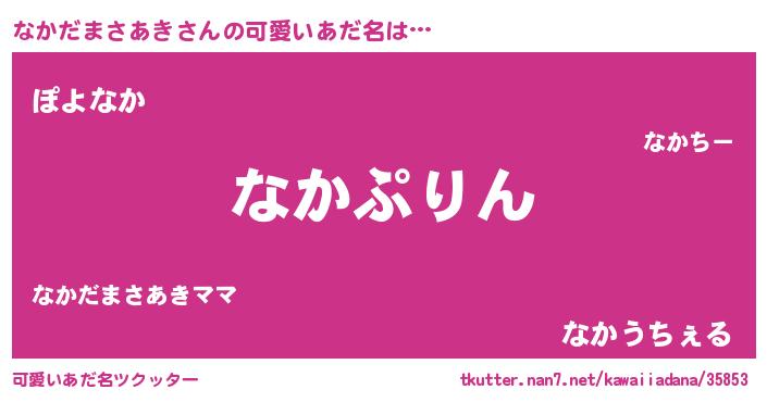 | 男性向けラノベタイトル風あだ名 | 『なかだまさあき~年齢イコール彼女いない歴の魔法使い~』 |