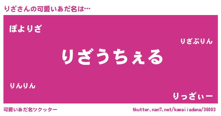 | ヘコむあだ名 | 『りざっ子』『りざもー』『豆乳』 |