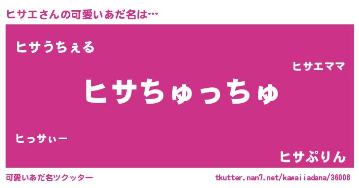 | 女子向けラノベタイトル風あだ名 | 『ヒサエ夫妻のなれそめ』『闇のヒサエ』 |