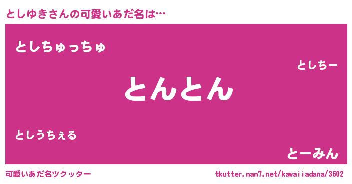 | 男性向けラノベタイトル風あだ名 | 『としゆきに滅ぼされるだけの簡単なお仕事です』 |