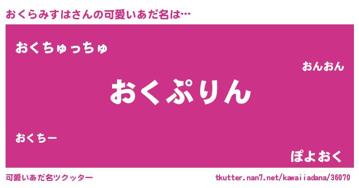 | 料理風あだ名 | 『おくらみすはごはん』 |