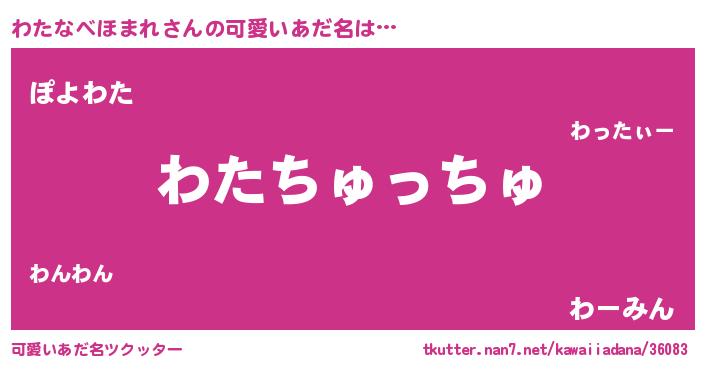 | ヘコむあだ名 | 『わたっ子』『わたふぇ~』 |
