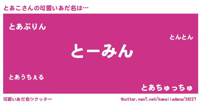 | 欧米人風あだ名 | 『とあこ・ステッグマイヤー』 |