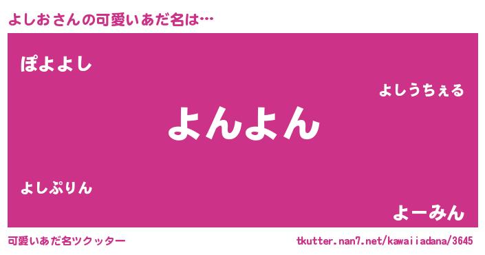 | 男性向けラノベタイトル風あだ名 | 『よしおの憂鬱』『魔弾の王とよしお』 |