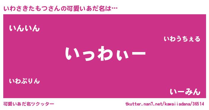 | 男性向けラノベタイトル風あだ名 | 『いわさきたもつに滅ぼされるだけの簡単なお仕事です』 |