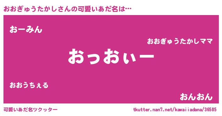 | 男性向けラノベタイトル風あだ名 | 『おおぎゅうたかしの嫁は女の子じゃないと思った?』 |