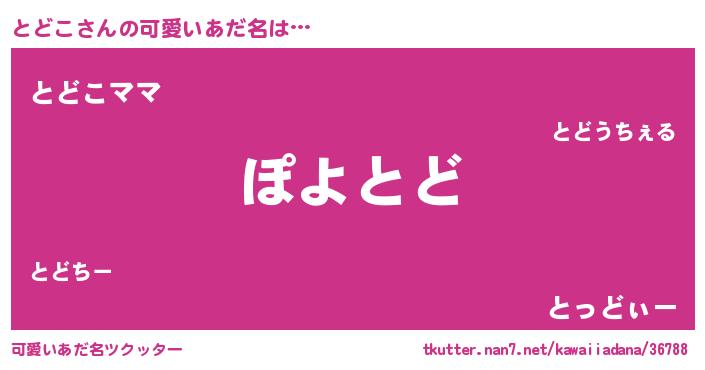 | 男性向けラノベタイトル風あだ名 | 『この素晴らしい世界にとどこを!』 |