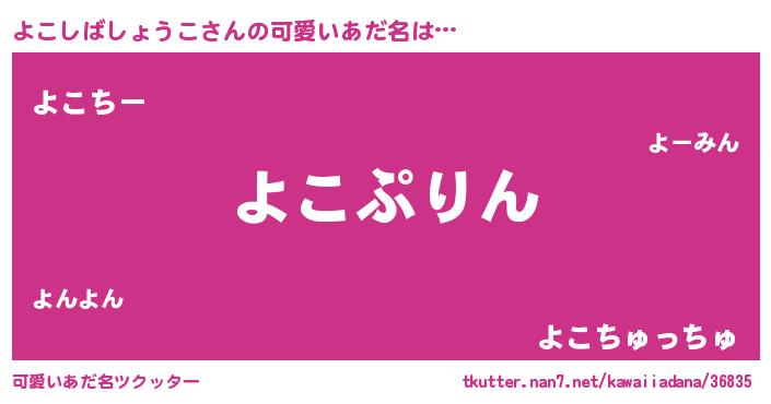 | 料理風あだ名 | 『よこしばしょうこごはん』 |