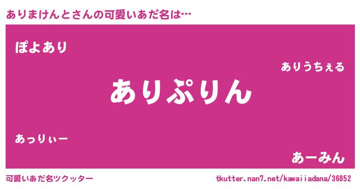 | 恥ずかしいあだ名 | 『アリマケントデラックス』『ありっちょ』 |