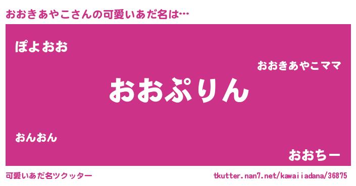 | 男性向けラノベタイトル風あだ名 | 『おおきあやこ~年齢イコール彼女いない歴の魔法使い~』 |
