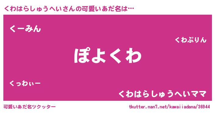| ヘコむあだ名 | 『くわはらしゅうへい(苦笑)』『くわを』 |