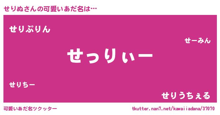 | 意味不明あだ名 | 『とにかく怪しいせりぬ』『自称せりぬ』 |