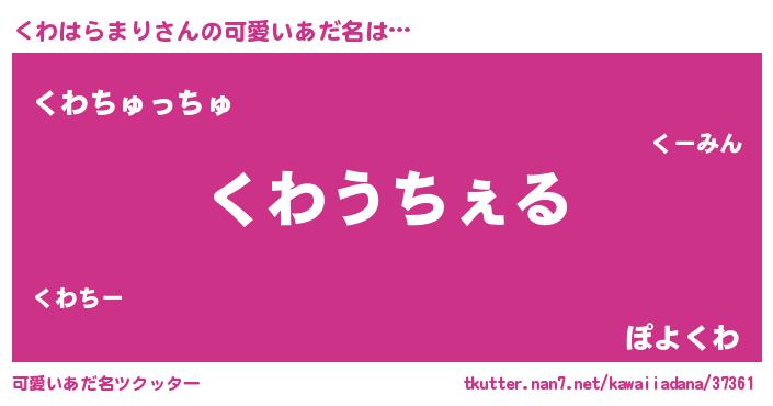 | ヘコむあだ名 | 『豆乳』『くわふぇ~』『くわお』 |