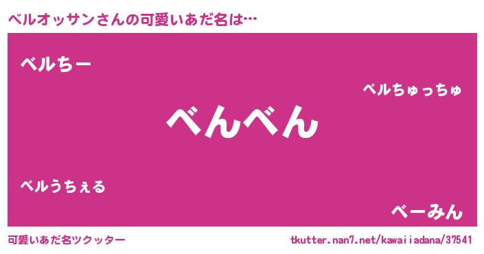 | 男性向けラノベタイトル風あだ名 | 『ベルオッサンに滅ぼされるだけの簡単なお仕事です』 |