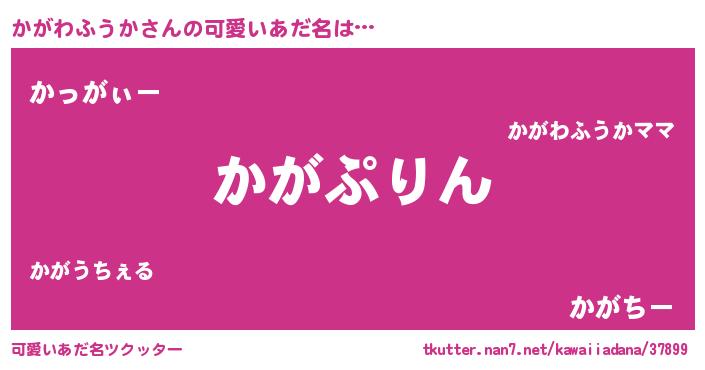 | 男性向けラノベタイトル風あだ名 | 『かがわふうか~年齢イコール彼女いない歴の魔法使い~』 |