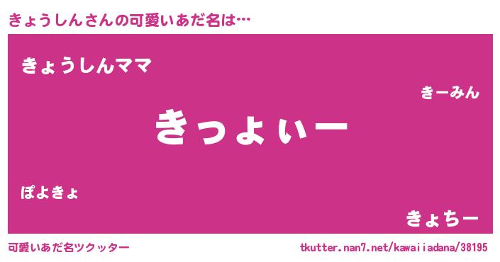 | ヘコむあだ名 | 『きょ太郎』『きょうしん(苦笑)』 |