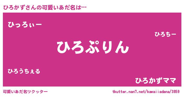| 男性向けラノベタイトル風あだ名 | 『ひろかず~年齢イコール彼女いない歴の魔法使い~』 |