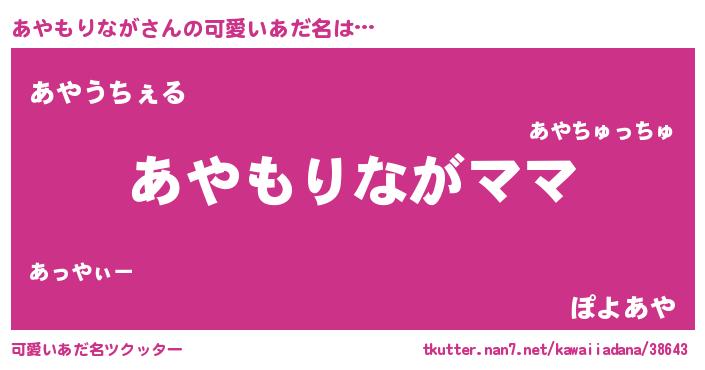 | ヘコむあだ名 | 『あやもりなが(笑)』『あやぷりん』 |