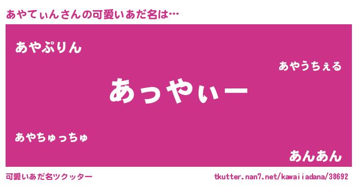| 男性向けラノベタイトル風あだ名 | 『ダンジョンにあやてぃんを求めるのは間違っているだろうか』 |