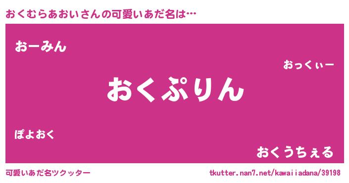 | 男性向けラノベタイトル風あだ名 | 『おくむらあおい~年齢イコール彼女いない歴の魔法使い~』 |