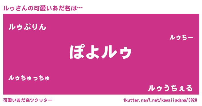 | ポケモン風あだ名 | 『ルゥゴンZ』『ルーゥイ』『ルゥダネ』 |
