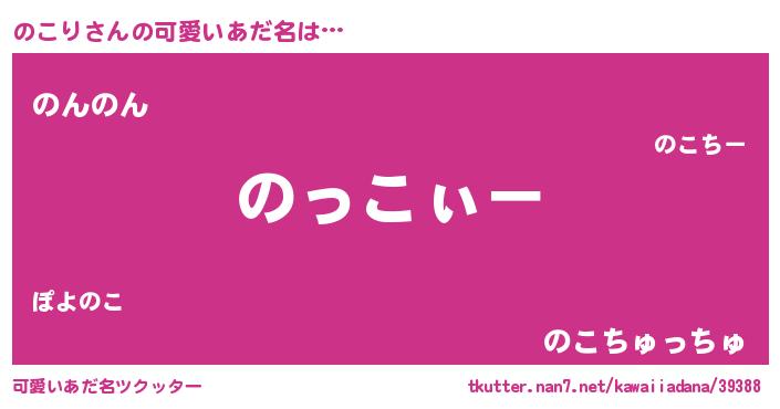 | 女子向けラノベタイトル風あだ名 | 『のこり様がみてる』『死神のこりの再婚』 |