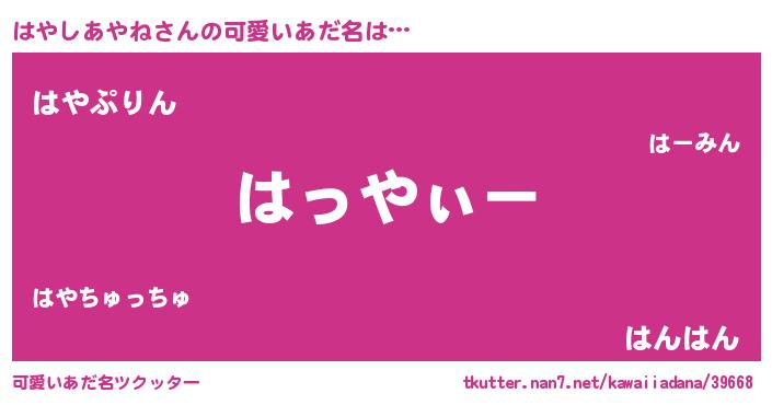 | ヒーロー風カッコイイあだ名 | 『暗黒騎士ハヤ』『スーパーハヤシアヤネ』 |