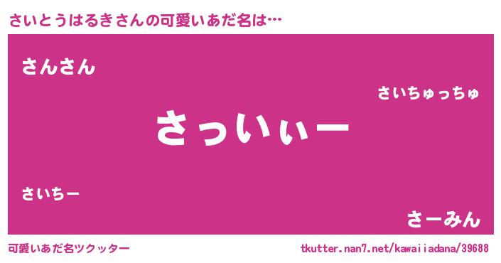 | 男性向けラノベタイトル風あだ名 | 『さいとうはるきの嫁は女の子じゃないと思った?』 |